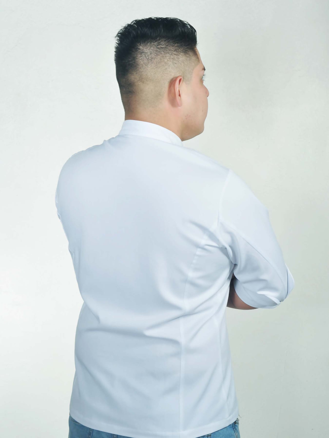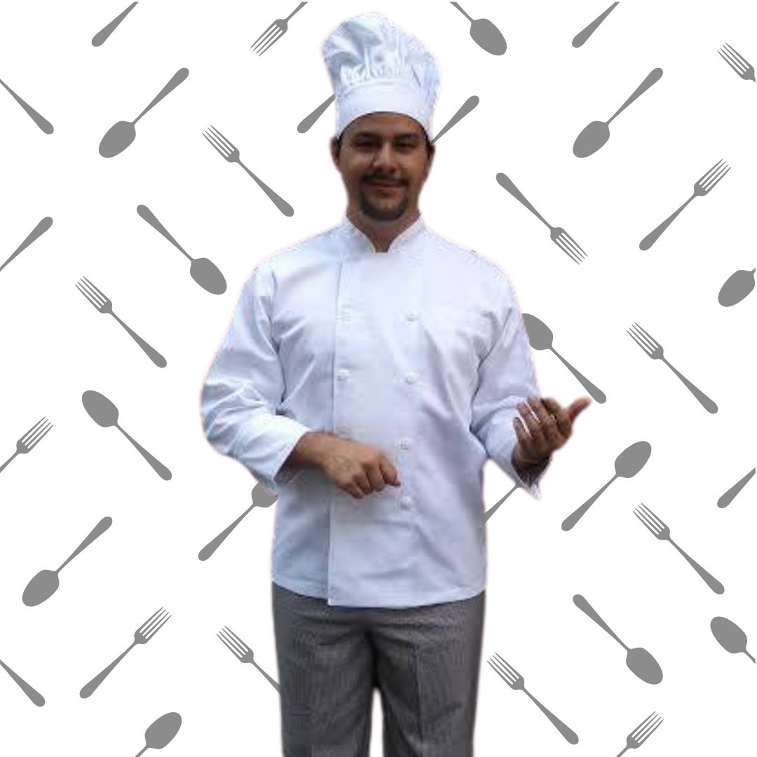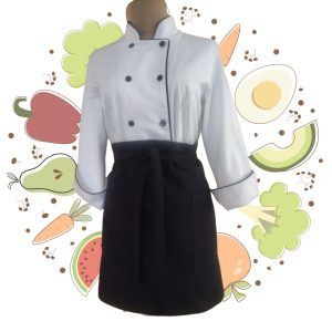 Clásica filipina para chef, botones y manga 3/4 en gabardina 65% algodón y 35% poliester Esta mezcla tiene la frescura del algodón y la resistencia y la facilidad de cuidado que da el poliester. Blanco, negro y otros colores sobre pedido.